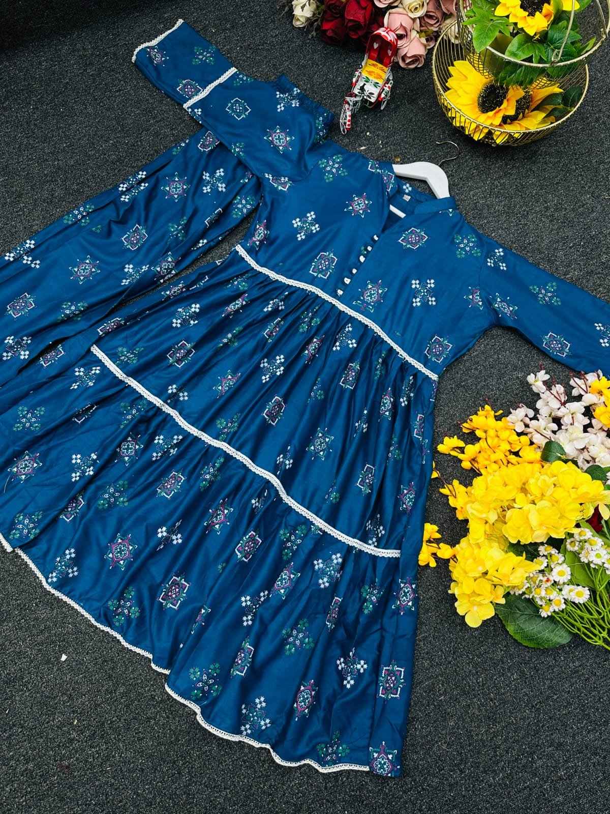 সেলোয়ার:- ভিআইপি কটন কাপড়ের উপর প্রিন্ট করা থাকবে । প্লাজু স্টাইল হবে। ফ্রি সাইজ। লং ৩৮/৪০