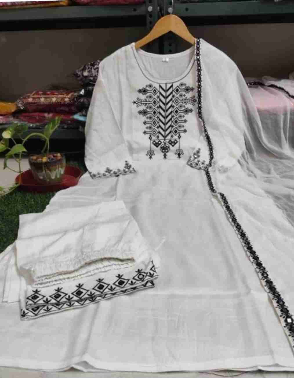 ★ইন্ডিয়ান কটন বুটিক্স(3ps) ★ফেব্রিক্স বডি –স্লাভ কটন, সাইজ( ৩৮-৪৪) √√ওড়না –ইন্ডিয়ান কিসমিস , √√সেলোয়ার –vip লিলেন, গলা হাতায় ও ওড়নায় এমবোটারি সুতার কাজ।