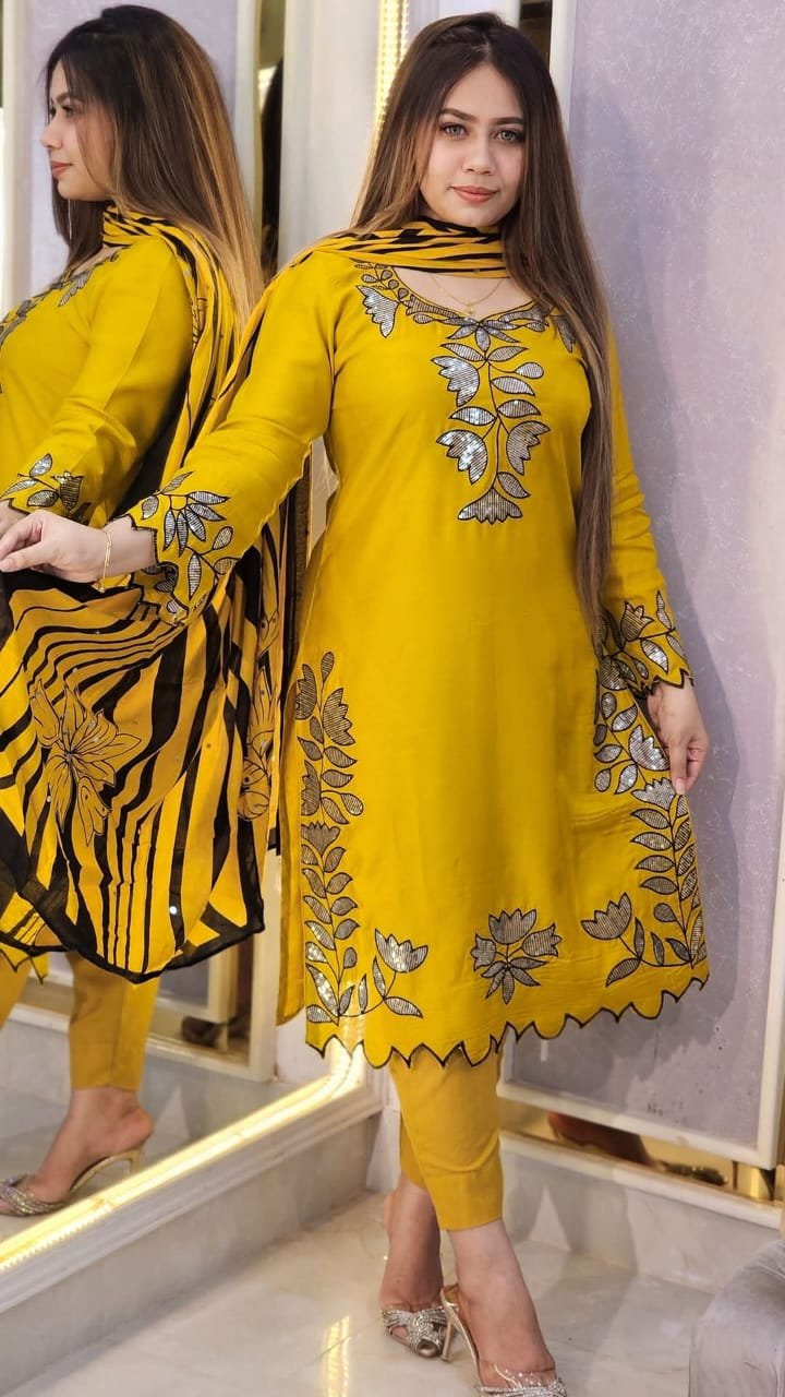 সম্পূর্ণ লেটেস্ট ডিজাইনের সিকোয়েন্স এবং এমব্রয়ডারি কাজ করা সম্পূর্ণ রেডি থ্রি-পিস কালেকশন।।
