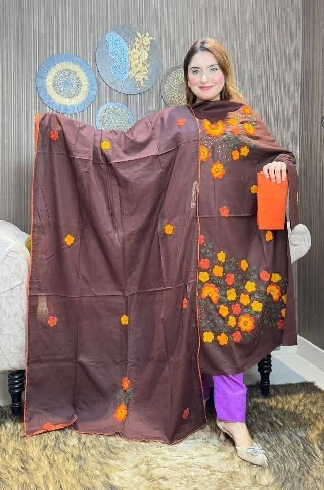 এ্যাপ্লিক কাজ করা থ্রি পিস ড্রেস সেলোয়ার 2.5গজ ওড়না 5হাত