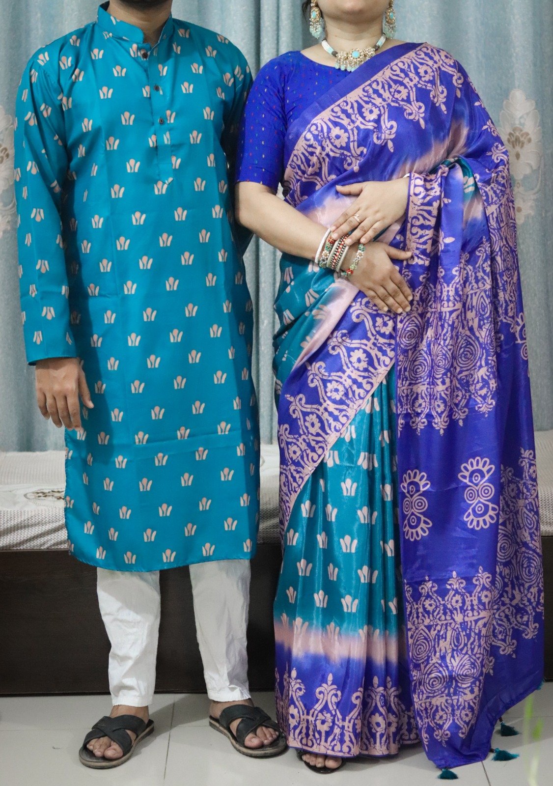 🔥ওয়েলেস সফ্ট সিল্ক শাড়ি 🔥ডিজিটাল প্রিন্টের কাজ করা 🔥শাড়ির সাথে টারসেল লাগানো 🔥সাথে ব্লাউজ পিস আছে 🔥চান্দুরি সিল্ক পাঞ্জাবি 🔥পাঞ্জাবির সাইজ 38-46 🔥অরিজিনাল প্রোডাক্ট