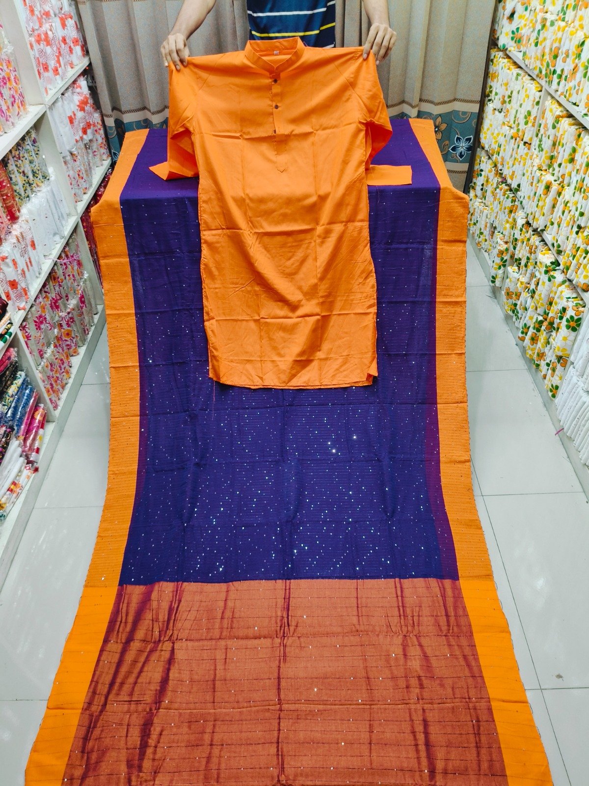 চুমকি সুতি শাড়ি এবং ধুপিয়ান সিল্ক পাঞ্জাবির কালেকশন ভালো মানের চুমকি সুতি শাড়ি। শাড়িগুলো ১৩.৫ হাত লম্বা। ধুপিয়ান সিল্ক পাঞ্জাবি আধুনিক ও মান সম্মত ডিজাইন কোয়ালিটি ফুল প্রডাক্ট সাইজ:-৪০,৪২,৪৪,৪৬