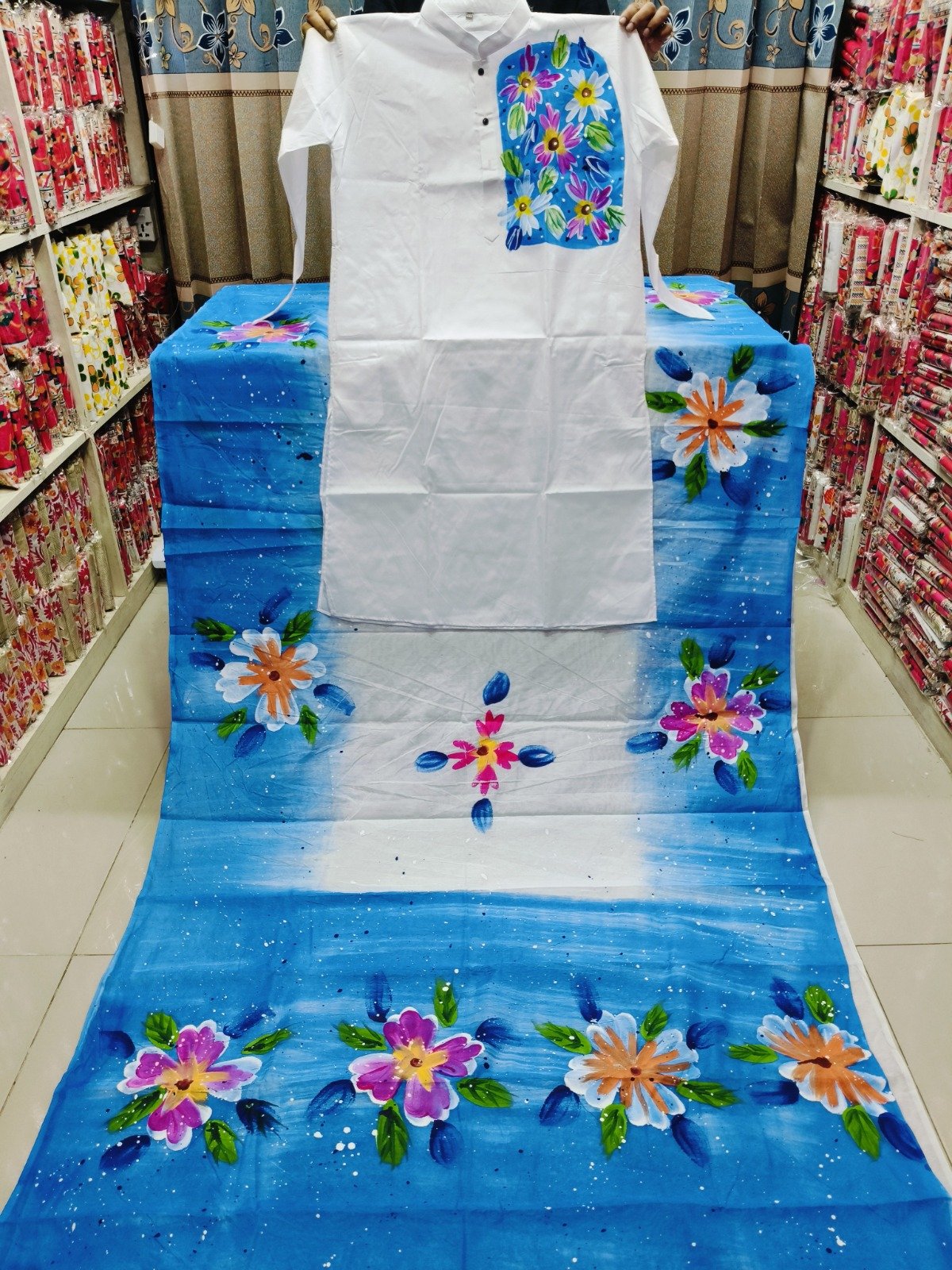 হাফ সিল্ক শাড়ি ধুপিয়ান সিল্ক পাঞ্জাবির সেরা কালেকশন  প্রোডাক্ট ডেসক্রিপশন শাড়ি : হাফ সিল্ক পাঞ্জাবি: ধুপিয়ান সিল্ক কাজ : হ্যান্ড প্রিন্ট তুলি . পাঞ্জাবি সাইজ-৪০,৪২,৪৪,৪৬ আধুনিক ও মান সম্মত ডিজাইন অরিজিনাল প্রোডাক্ট