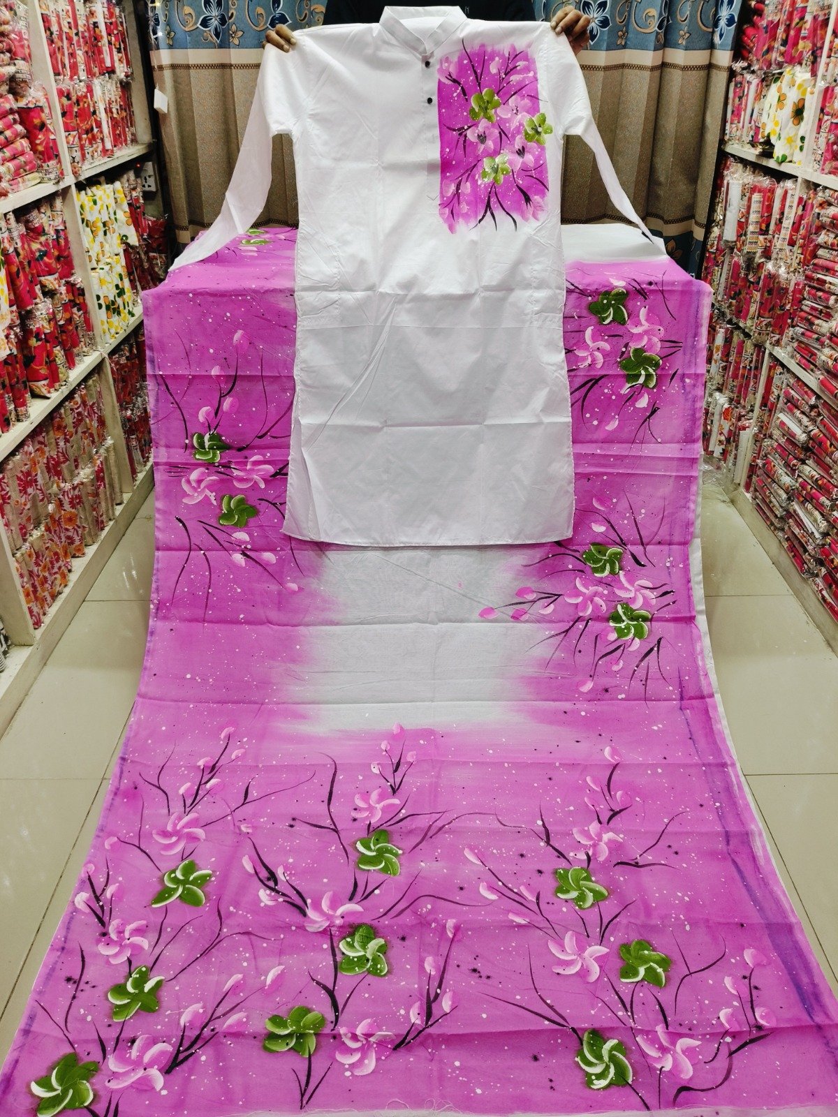 হাফ সিল্ক শাড়ি ধুপিয়ান সিল্ক পাঞ্জাবির সেরা কালেকশন  প্রোডাক্ট ডেসক্রিপশন শাড়ি : হাফ সিল্ক পাঞ্জাবি: ধুপিয়ান সিল্ক কাজ : হ্যান্ড প্রিন্ট তুলি . পাঞ্জাবি সাইজ-৪০,৪২,৪৪,৪৬ আধুনিক ও মান সম্মত ডিজাইন অরিজিনাল প্রোডাক্ট