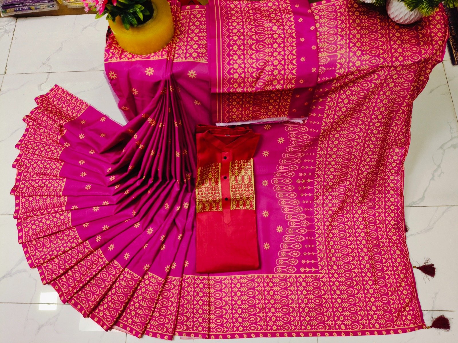 🤍 সাদায় থাকে অন্যরকম ভালো লাগা… সাদা পাঞ্জাবি আর মানানসই শাড়ির কাপল সেট, যা একসাথে দেয় পরিপূর্ণতা, ঐতিহ্য আর ভালোবাসার স্পর্শ। এই সেট শুধু পোশাক নয়, এটা দু’জনের একসাথে সুন্দরভাবে ধরা দেওয়ার এক নিঃশব্দ স্টেটমেন্ট। সাদার এই সরলতাই যেন হয়ে ওঠে দু’জনার সম্পর্কের মলিনতাহীন প্রতিচ্ছবি। ☘️প্রিমিয়াম হাফসিল্ক শাড়ি ☘️স্কিন প্রিন্টের কাজ করা ☘️ভালোমানের ধুপিয়ান পাঞ্জাবি […]
