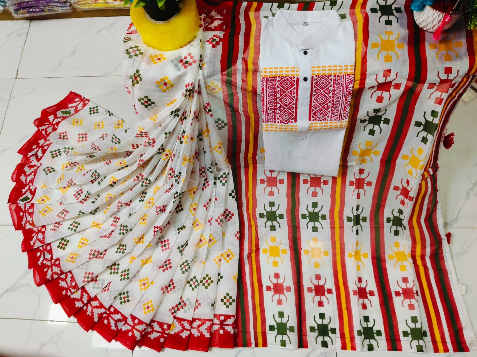 বিশেষ প্রিমিয়াম হাফসিল্ক শাড়ি এবং ধুপিয়ান পাঞ্জাবি, সেরা মানের নিশ্চয়তা সহ। যে কোনও অনুষ্ঠানের জন্য উপযুক্ত,