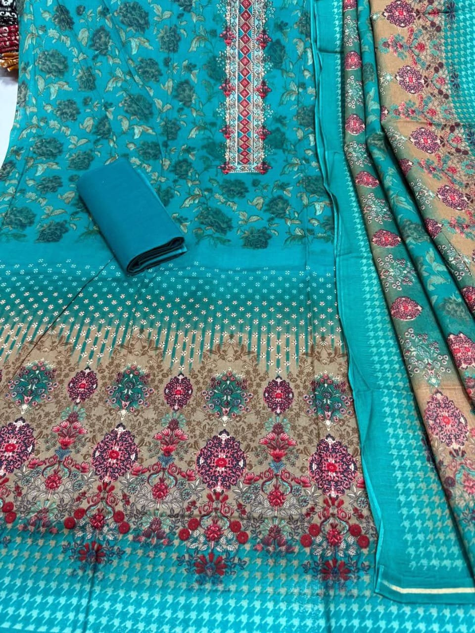 কালামকাড়ি জয়পুরি কামিজ :কটন মেইল প্রিন্ট করা। সেলোয়ার-:কটন ২.৫ গজ ওড়না:কটন ২.৫ গজ