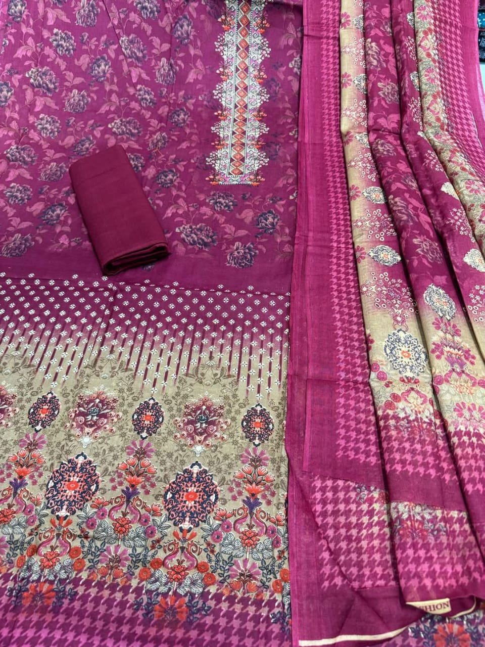 কালামকাড়ি জয়পুরি কামিজ :কটন মেইল প্রিন্ট করা। সেলোয়ার-:কটন ২.৫ গজ ওড়না:কটন ২.৫ গজ