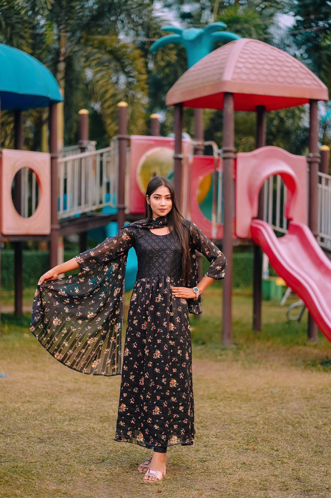 জামা+ওরনা+পেন্ট (গাউন থ্রি-পিস) সম্পুর্ন জামাতে ইনার করা বডি সাইজ-৩৬-৩৮-৪০-৪২-৪৪ লং-৫০ ইঞ্চি গের-১০০ ইঞ্চি চায়না জরজেট গাউন রেডিমেট করা