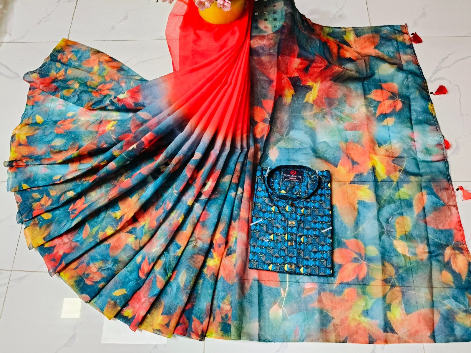 চান্দুরী ডিজিটাল প্রিন্টের শাড়ি এবং পাঞ্জাবি কাপল ড্রেস