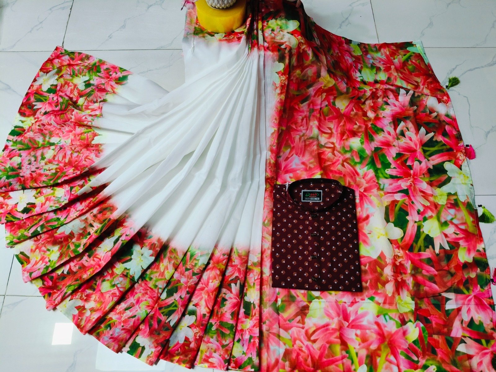 চান্দুরী ডিজিটাল প্রিন্টের শাড়ি এবং পাঞ্জাবি কাপল ড্রেস