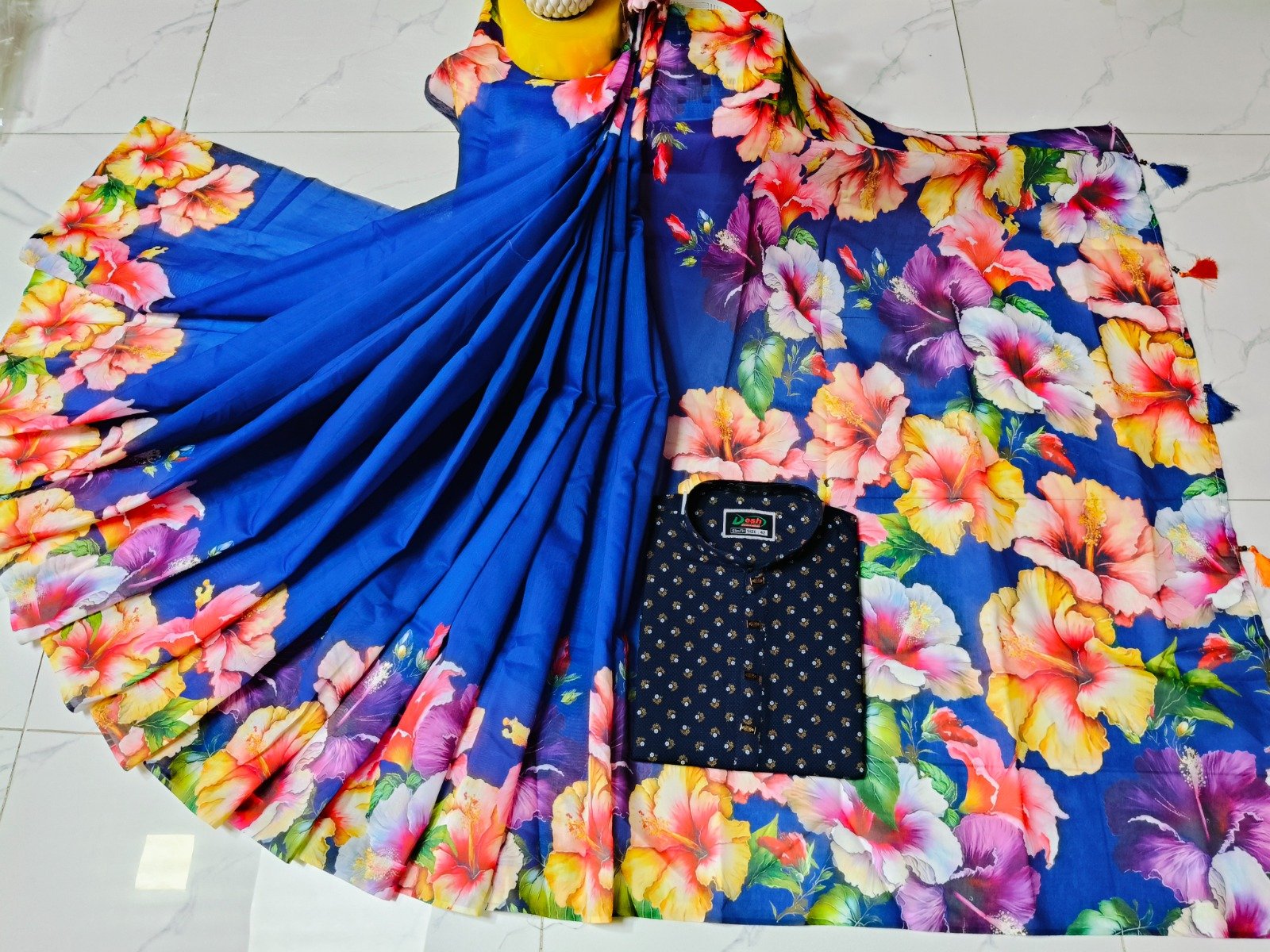 চান্দুরী ডিজিটাল প্রিন্টের শাড়ি এবং পাঞ্জাবি কাপল ড্রেস