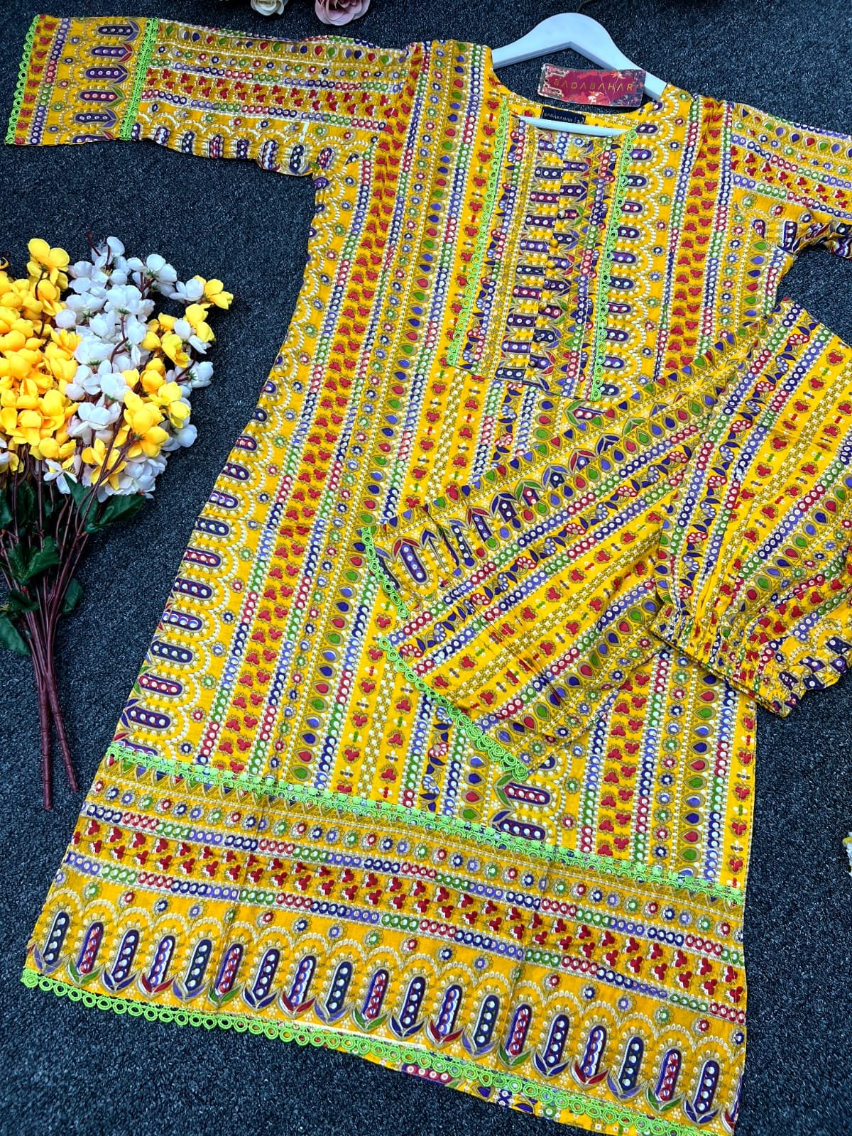 জামার বিবরণ:- সুতি কাপড়ের উপর ডিজিটাল প্রিন্ট এর কাজ করা থাকবে এবং কি লেইস এর কাজ করা থাকবে।