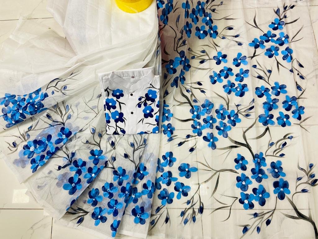 ট্রেডিশনাল হ্যান্ড প্রিন্ট কাপল সেট  প্রোডাক্ট ডেসক্রিপশন:- হাফ সিল্ক শাড়ি।  ধুপিয়ান সিল্ক পাঞ্জাবি। হ্যান্ড প্রিন্ট তুলির কাজ।  পাঞ্জাবি সাইজ-৪০,৪২,৪৪,৪৬ আধুনিক ও মান সম্মত ডিজাইন। অরিজিনাল প্রোডাক্ট।