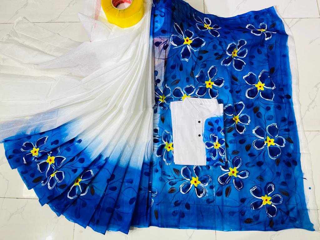 ট্রেডিশনাল হ্যান্ড প্রিন্ট কাপল সেট  প্রোডাক্ট ডেসক্রিপশন:- হাফ সিল্ক শাড়ি।  ধুপিয়ান সিল্ক পাঞ্জাবি। হ্যান্ড প্রিন্ট তুলির কাজ।  পাঞ্জাবি সাইজ-৪০,৪২,৪৪,৪৬ আধুনিক ও মান সম্মত ডিজাইন। অরিজিনাল প্রোডাক্ট।