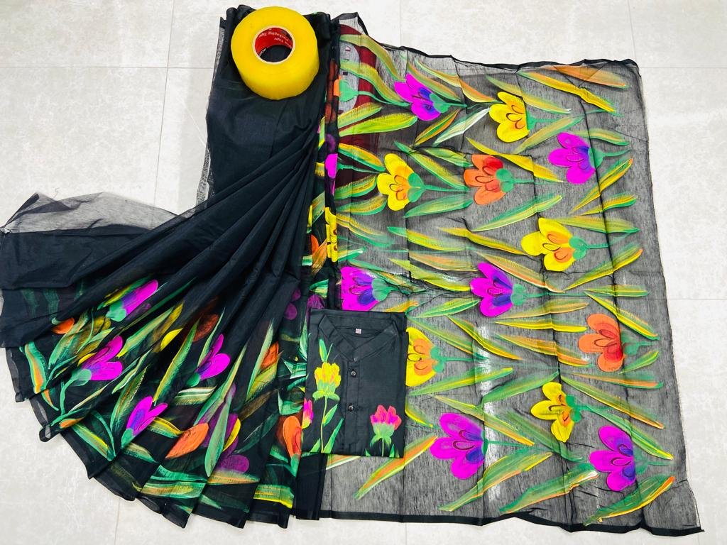 হ্যান্ড প্রিন্ট তুলির কাজ।