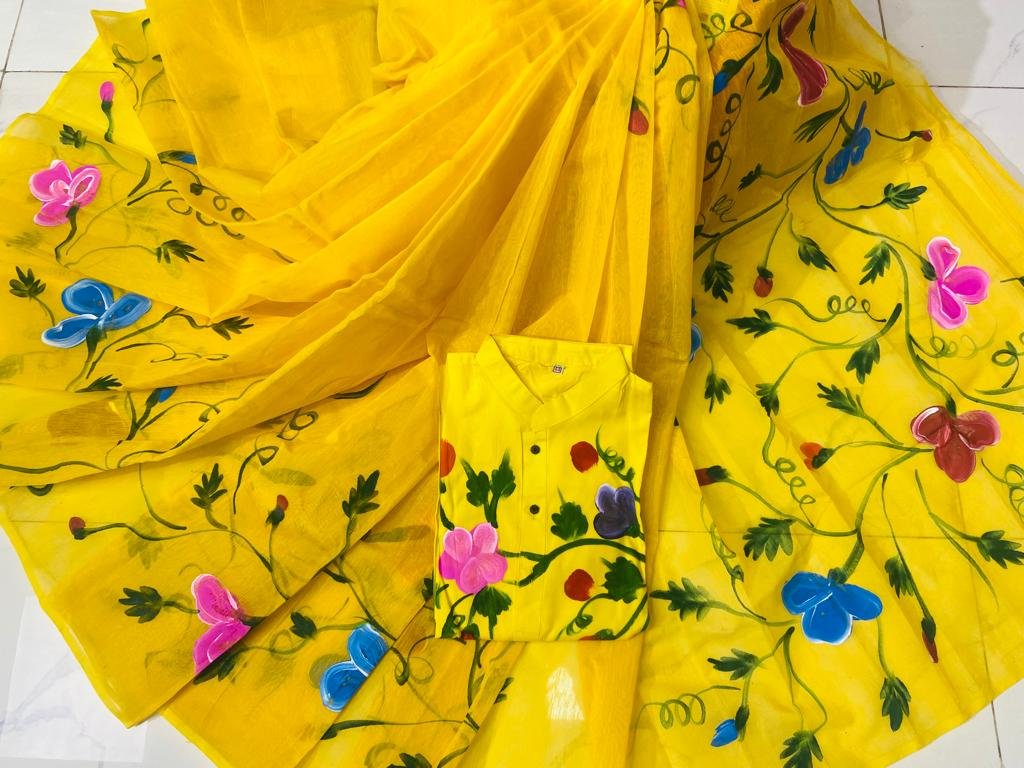 ট্রেডিশনাল হ্যান্ড প্রিন্ট কাপল সেট  প্রোডাক্ট ডেসক্রিপশন:- হাফ সিল্ক শাড়ি।  ধুপিয়ান সিল্ক পাঞ্জাবি। হ্যান্ড প্রিন্ট তুলির কাজ।  পাঞ্জাবি সাইজ-৪০,৪২,৪৪,৪৬ আধুনিক ও মান সম্মত ডিজাইন। অরিজিনাল প্রোডাক্ট।