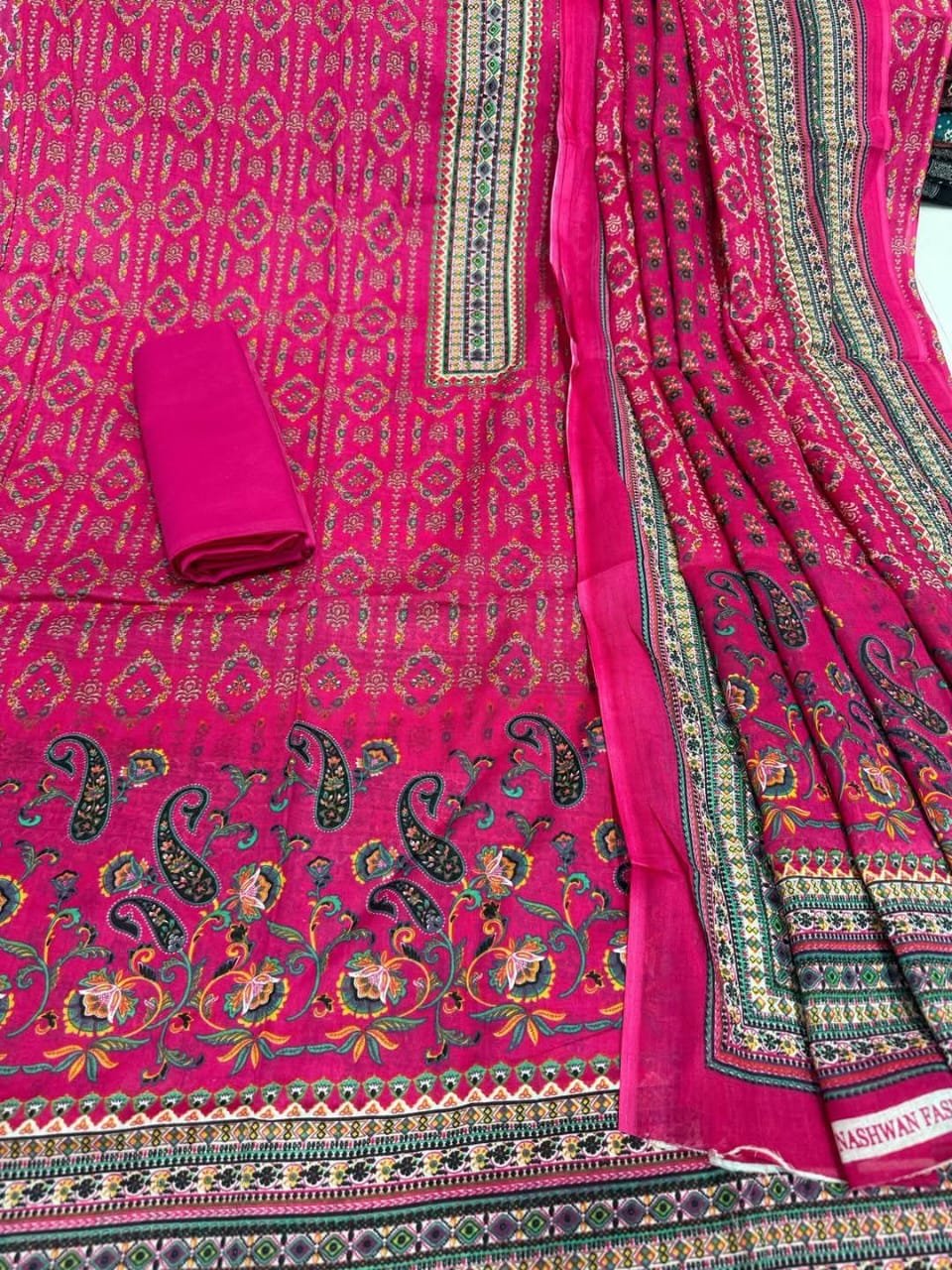 কালামকাড়ি জয়পুরি কামিজ :কটন মেইল প্রিন্ট করা। সেলোয়ার-:কটন ২.৫ গজ ওড়না:কটন ২.৫ গজ