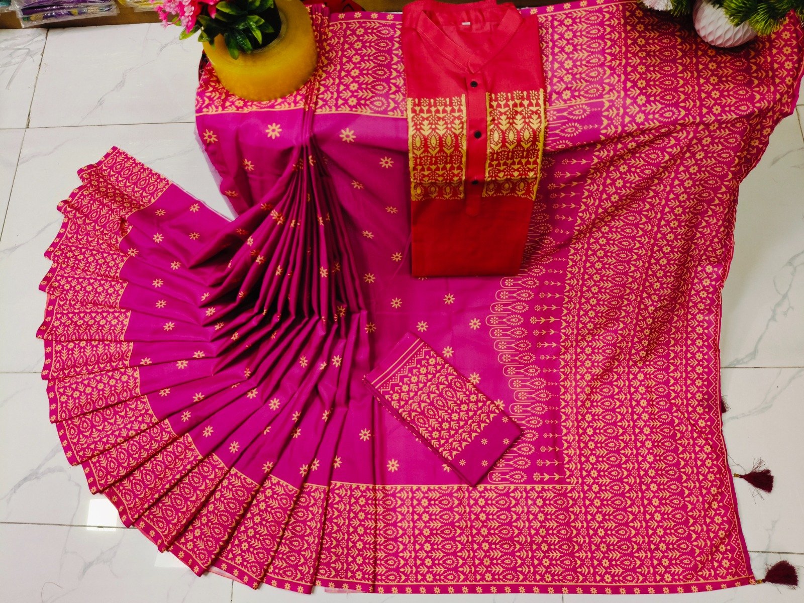 ☘️সাথে ব্লাউজ পিস আছে