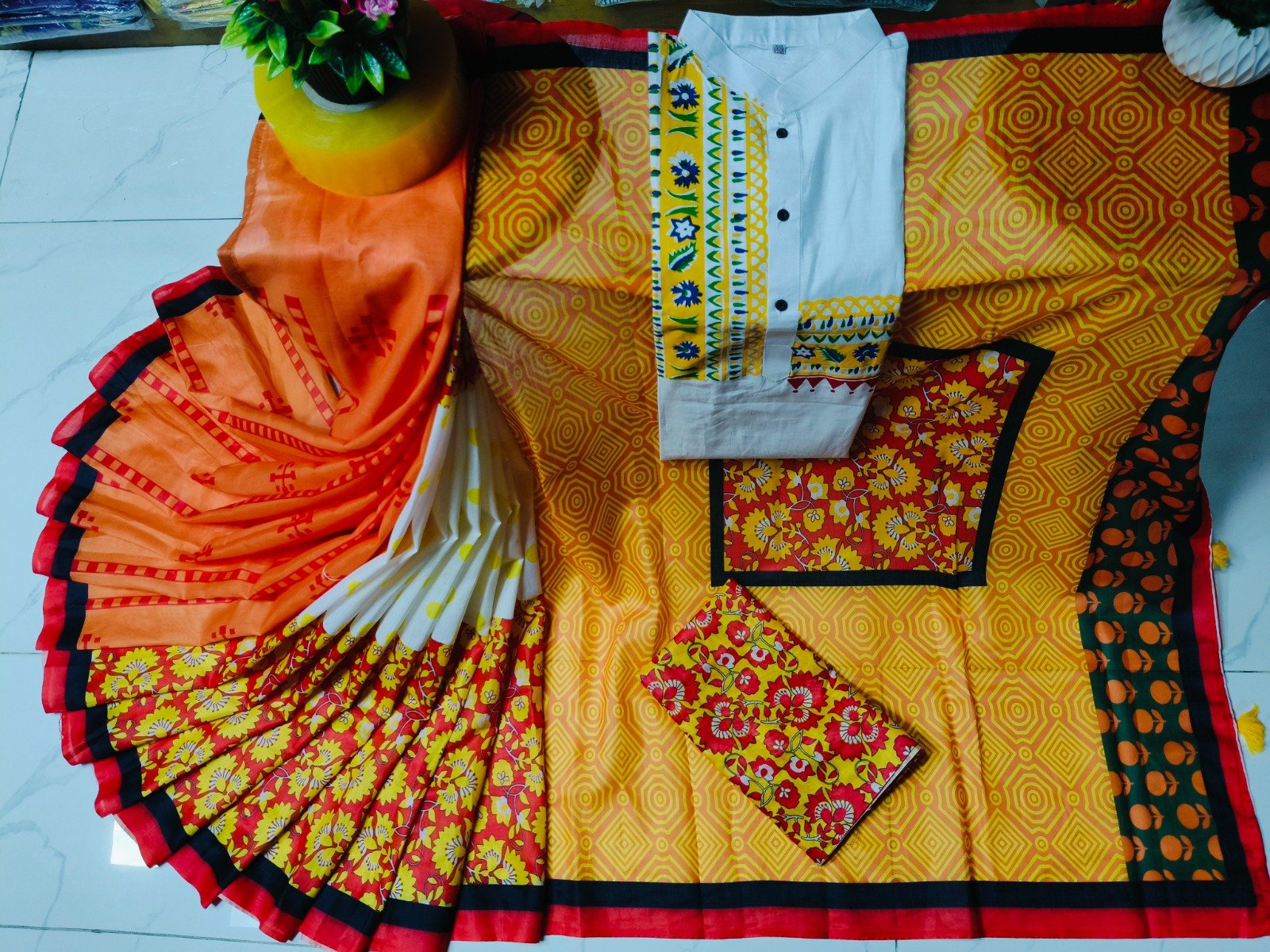 নতুন ধুপিয়ান সিল্ক শাড়ি ও পাঞ্জাবির কাপল সেট