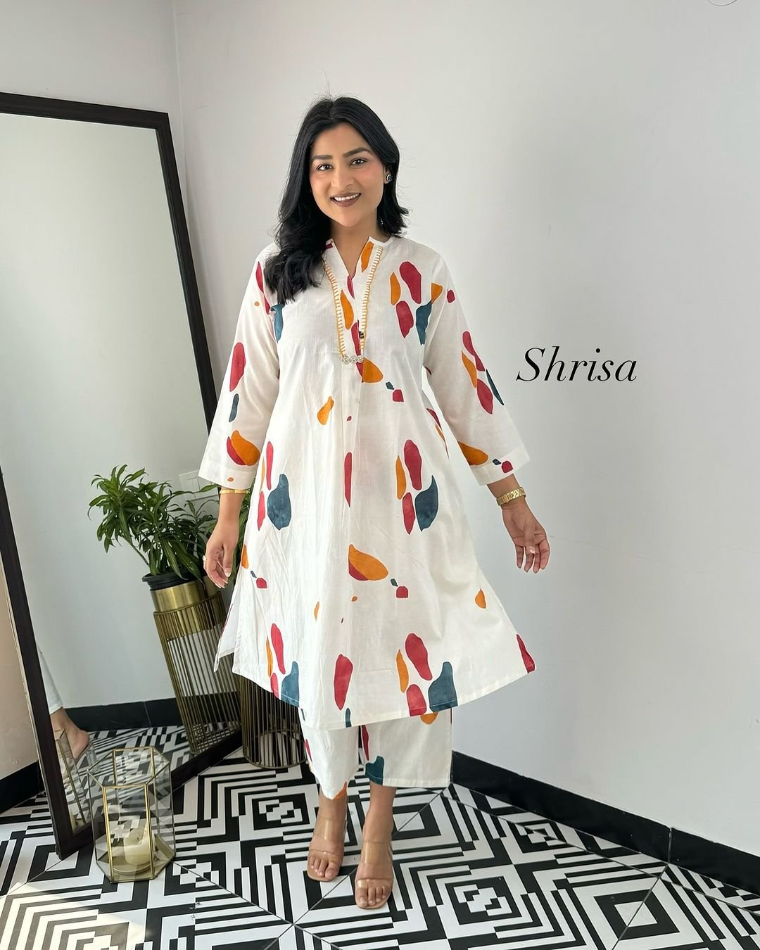 জামা:- এসি কটন কাপড়ের উপর স্কিন প্রিন্ট এর কাজ থাকবে এবং কি নিচে সাইট