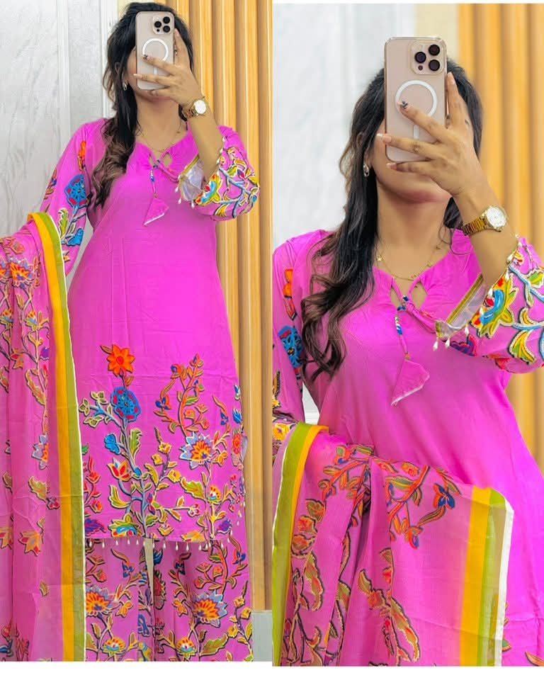 সেলোয়ার:- চায়না মাইক্রোসফট কাপড়ের উপর ডিজিটাল প্রিন্টের কাজ করা থাকবে!!