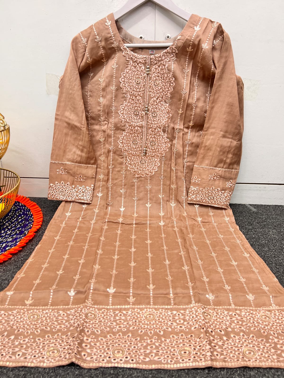 জামা:-অরজিনাল মুসলিম কটন কাপড়ের উপর বোরিং এর হেভি এমব্রয়ডারি এবং সিকোয়েন্সের কাজ করা থাকবে।। গলায় রিপিট/মুতির কাজ করা।। জামার লং ৪৪/৪৫ ইঞ্চি ….বডি সাইজ ৩৪/৩৬/৩৮/৪০
