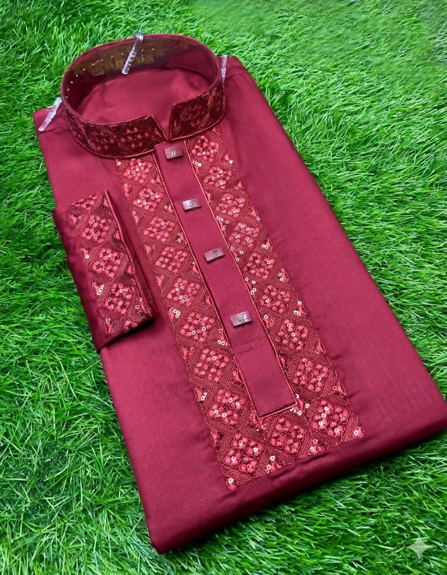 ফেব্রিক: উন্নত মানের স্লাব শাটন (Slub Satton) কাপড়। এই কাপড়ের বিশেষত্ব হলো এর টেক্সচার এবং হালকা গ্লসি ফিনিশিং, যা আপনাকে দেয় এক রাজকীয় অনুভূতি।