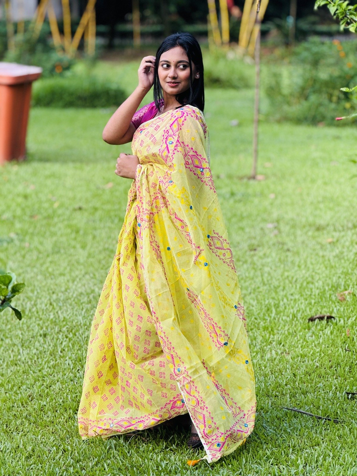 ✨প্রিমিয়াম সেমি মসলিন শাড়ি সাথে এমব্রয়ডারি কাজ আছে ডলার বসানো আছে ✅ব্লক প্রিন্টের কাজ করা ✅১৩ থেকে ১৪ হাত ✅গর্জিয়াস মালের প্রিমিয়াম শাড়ি