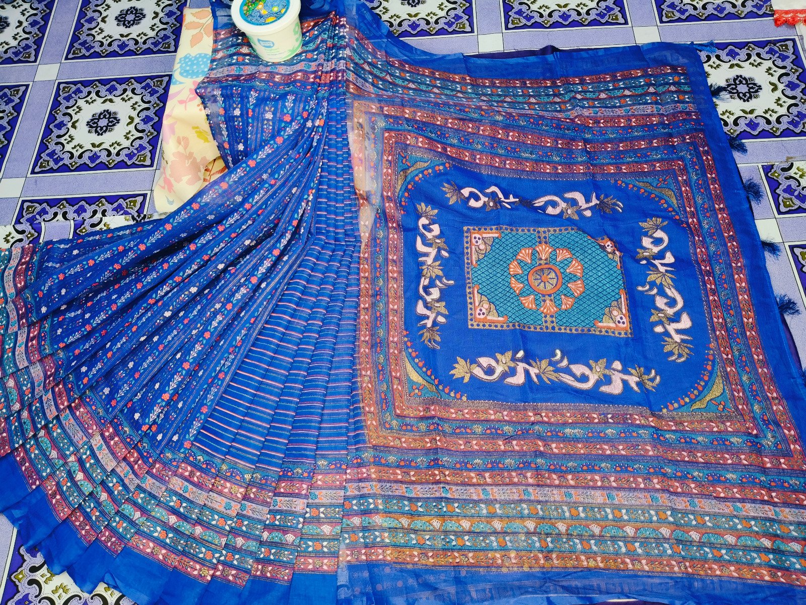 প্রিমিয়াম হাফসিল্ক শাড়ি স্কিন প্রিন্টের কাজ করা শাড়ির সাথে ব্লাউজ নেই কোয়ালিটি ফুল প্রোডাক্ট প্রিমিয়াম স্টাইলিশ কালেকশ