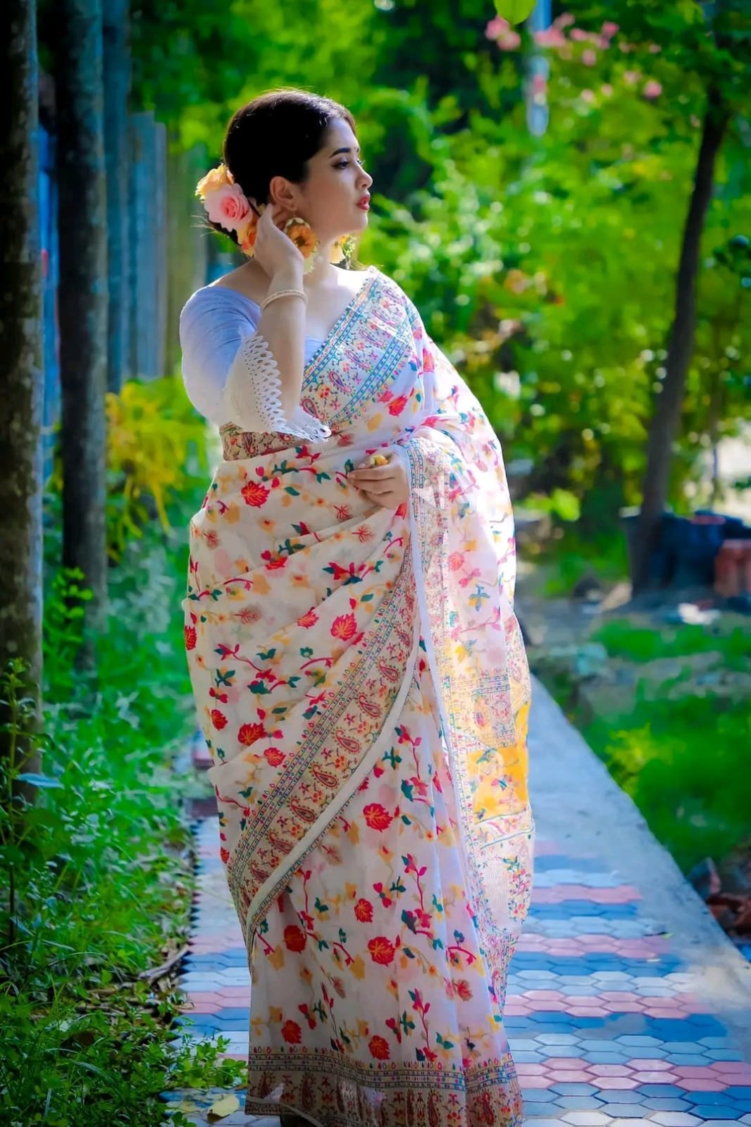 ভাইরাল স্কিন পিন্ড শাড়ি(ব্লাউজ পিস সহ) টারসেল লাগানো থাকবে সেম টু সেম কোয়ালিটিফুল পণ্য
