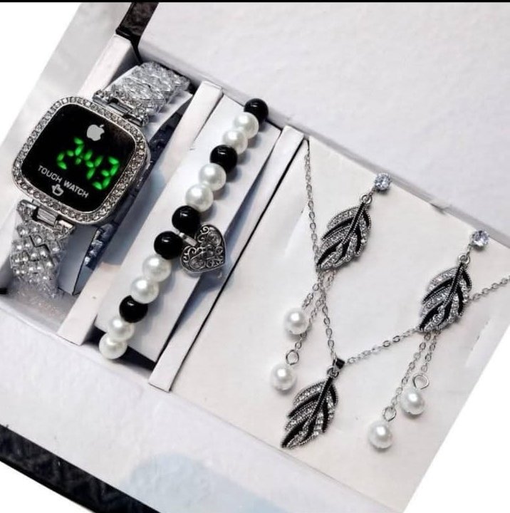 মেয়েদের ঘড়ি কম্বো প্যাক কম্বো প্যাকে যা যা থাকছে👇 ১/একটি ঘড়ি ২/বেসলেট ৩/কানের দুল ৪/গলার চেইন ৫/একটি আকর্ষণীয় বক্স