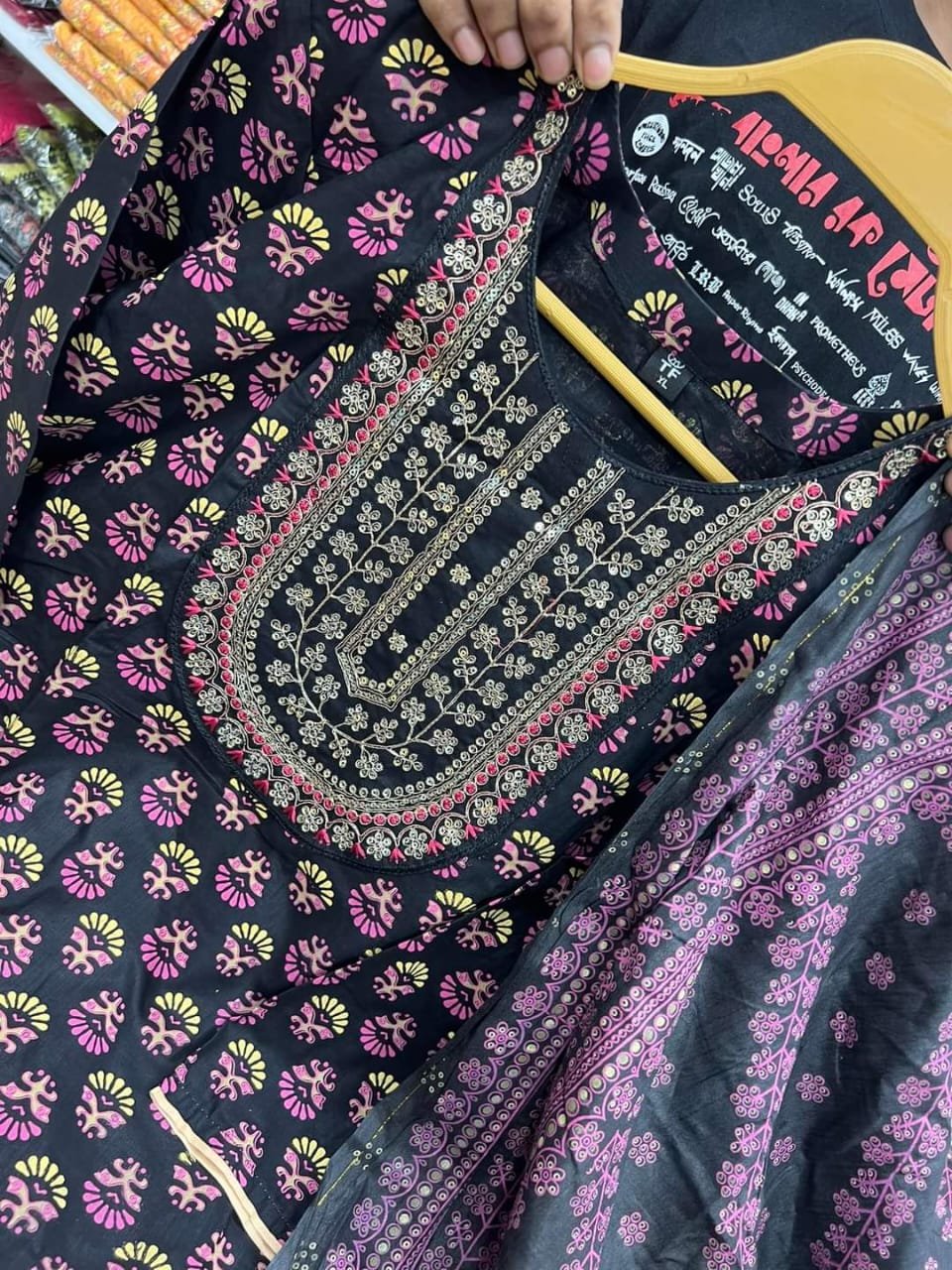 কট সুতা দিয়ে গলা ও প্যানেলে এমব্রয়ডারি কাজ করা। 100%কালার গ্যারান্টি ।