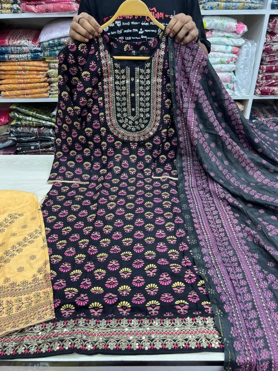 রেডিমেড কটন বুটিক থ্রি পিস প্রোডাক্ট ড্রিসক্রিপশন :- ফেব্রিক্স+বডি –স্লাভ কটন। সাইজ:- (৩৮,৪০,৪২,৪৪) লং–৪৪+. ওড়না – কটন, (৫হাত)। সেলোয়ার– লিলেন ১ নাম্বারটা। কট সুতা দিয়ে গলা ও প্যানেলে এমব্রয়ডারি কাজ করা। 100%কালার গ্যারান্টি ।
