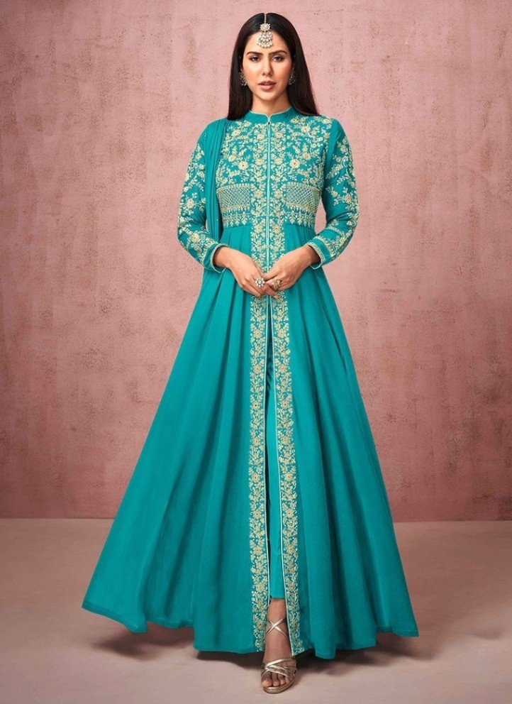 রেডিমেড জর্জেট এমব্রয়ডারি পার্টি ড্রেস