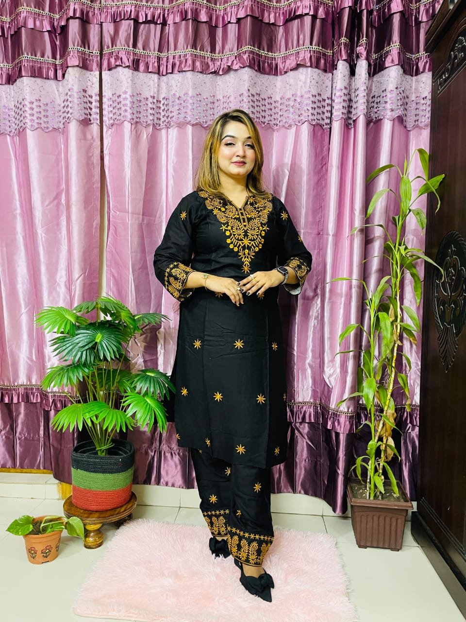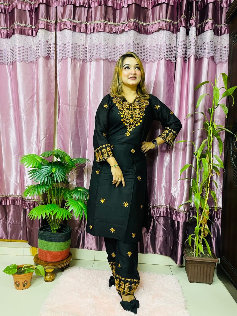 সেলোয়ার: সুতি এসি কটন হবে এবং কম্পিউটারের কাজ করা হবে