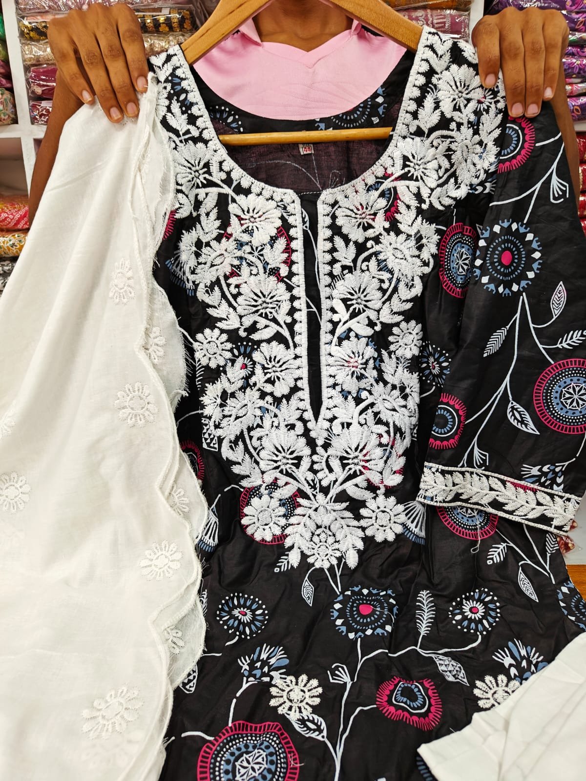 রেডিমেড থ্রি পিস গলায় বডি কম্পিউটার কাজ করা কামিজ: কটন সালোয়ার: কটন ওড়না : কটন, কাজ করা বডি সাইজ:৩৮,৪২,৪৪