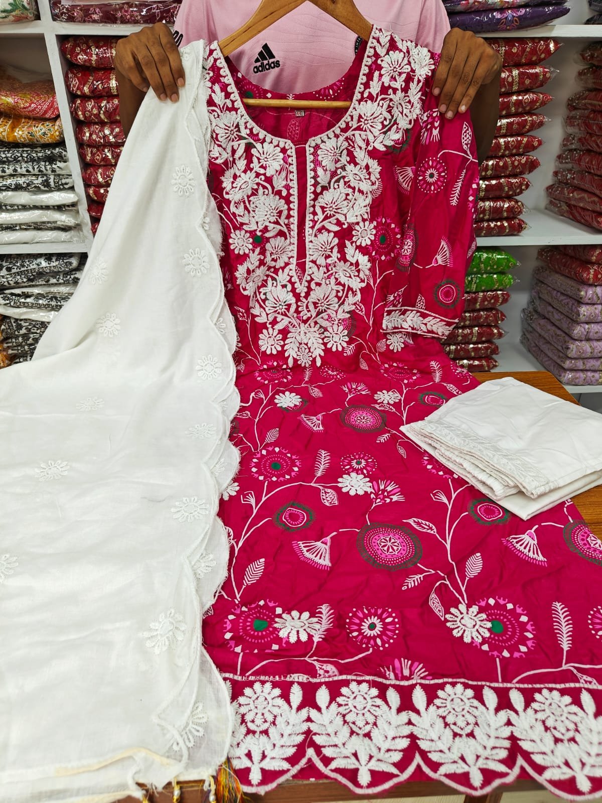 রেডিমেড থ্রি পিস  গলায় বডি কম্পিউটার কাজ করা  কামিজ: কটন  সালোয়ার: কটন ওড়না : কটন, কাজ করা  বডি সাইজ:৩৮,৪২,৪৪