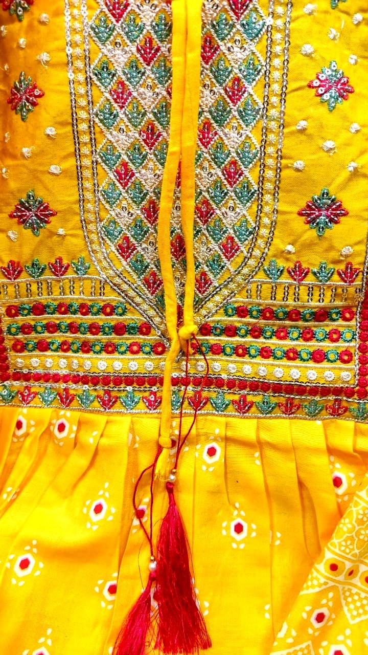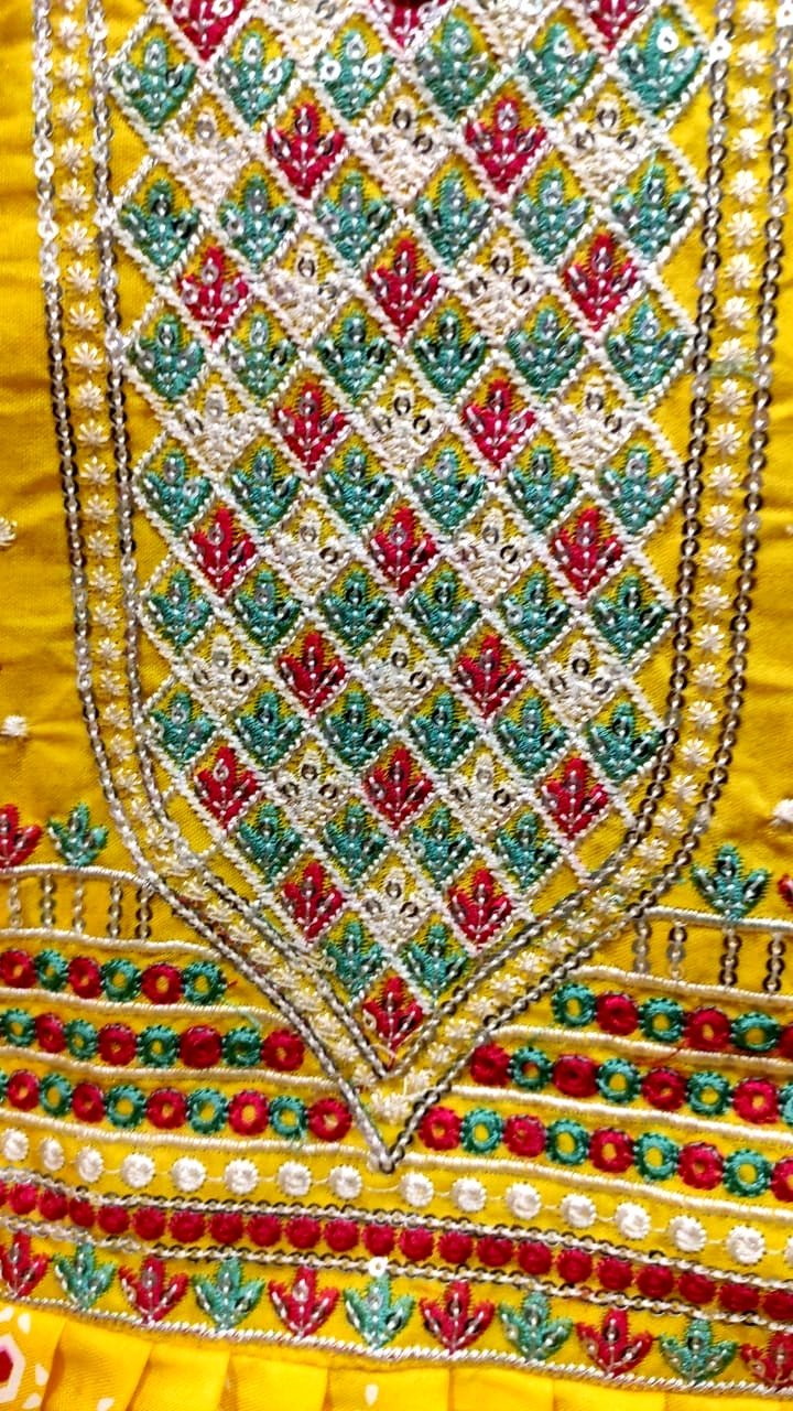 জামার বুকে এম্বুডারি ও সিকুয়েন্স কাজ করা