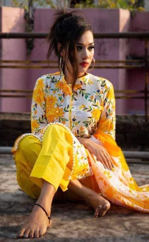 আড়ি কাজ করা সুতি থ্রী পিছ সুতির থ্রী পিস লং :-46 সেলোয়ার :-2.5গজ ওড়না:- 5হাত