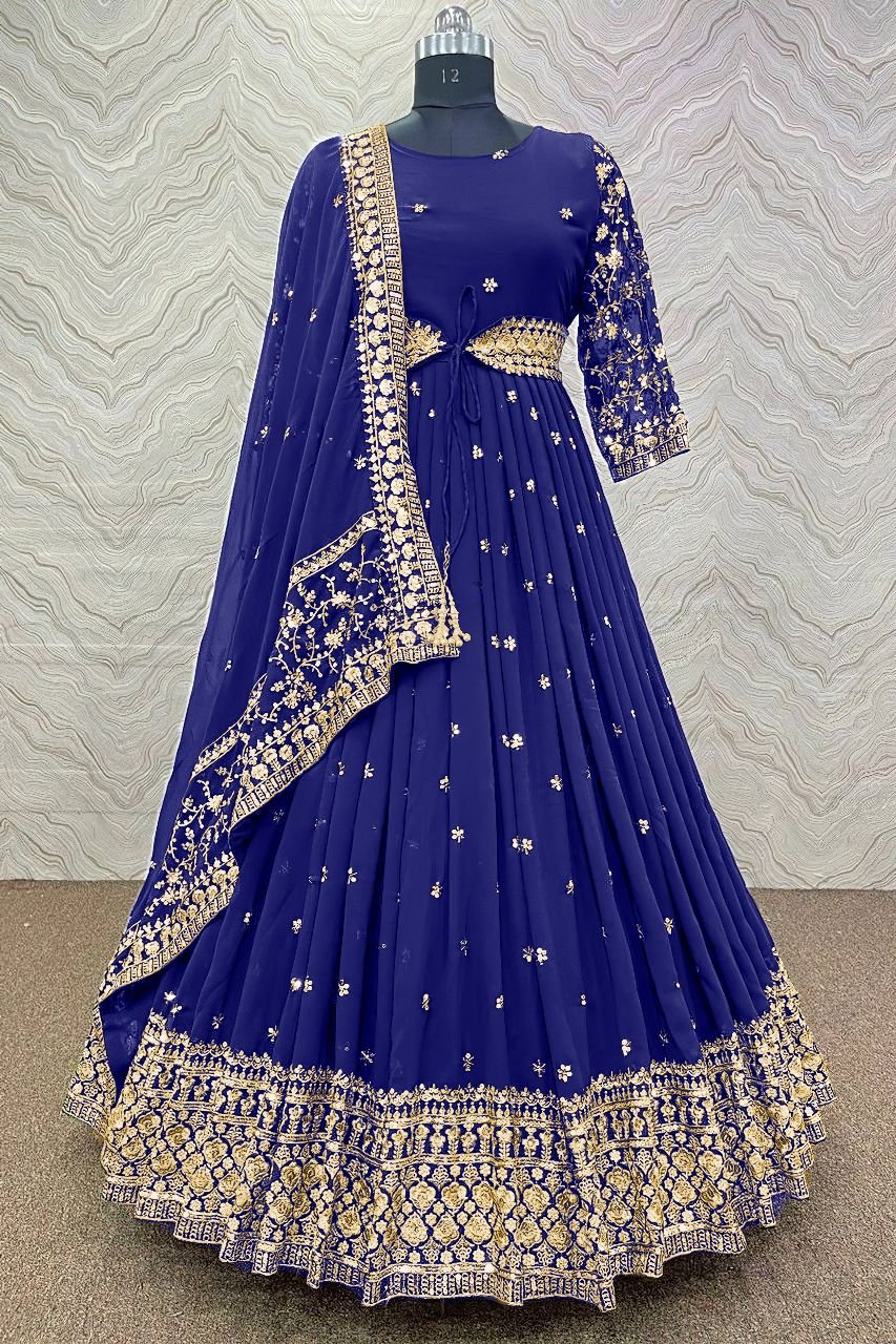 সেমী স্টিচড জর্জেট এমব্রয়ডারি লং ফ্লোর টাচ আনারকলি পার্টি ড্রেস