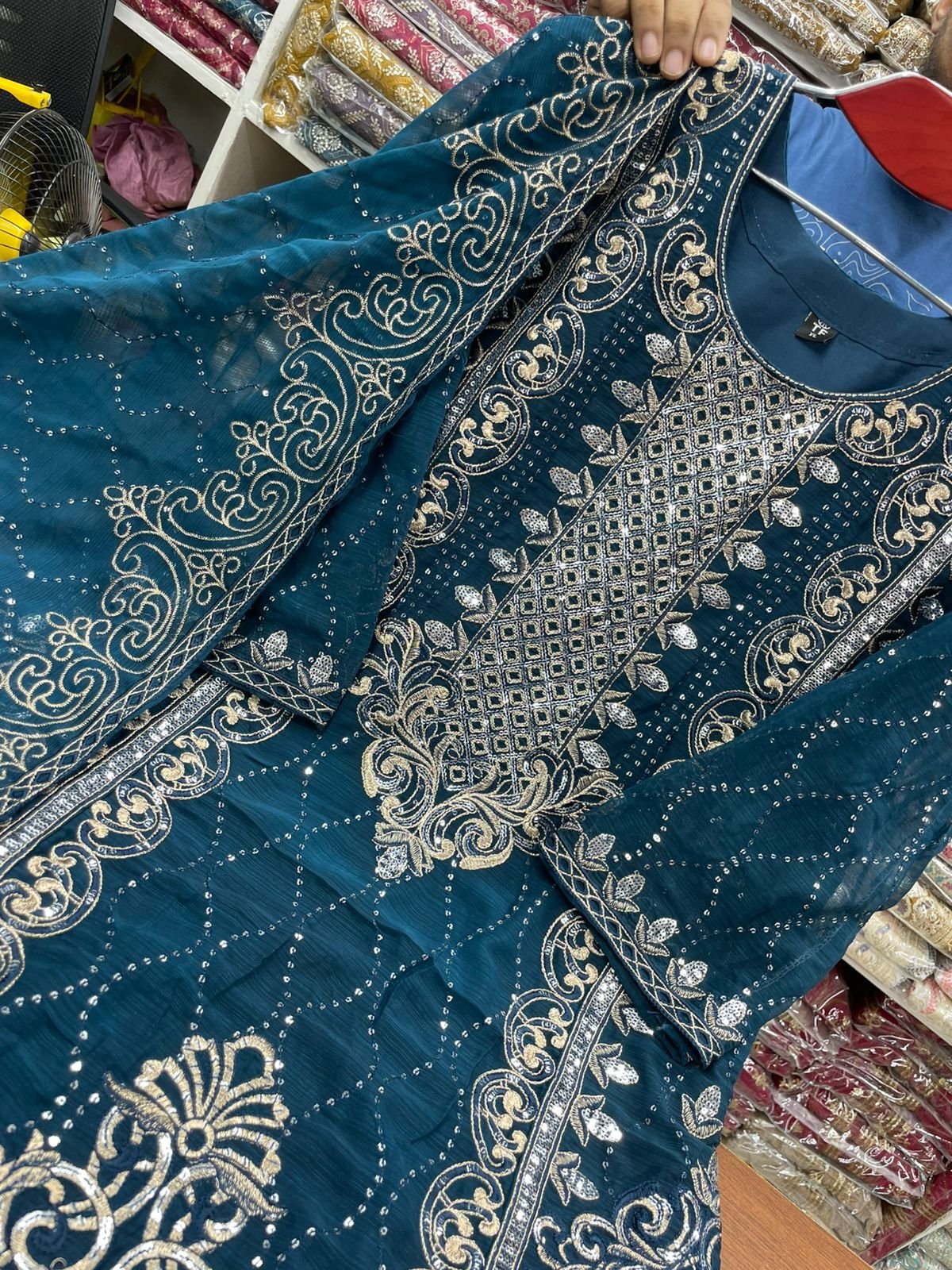 √√ heavy sequence and jari embroidery work.