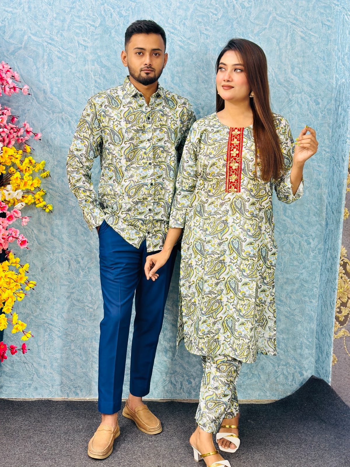আপনার এবং আপনার সঙ্গীর জন্য নিয়ে এলাম স্টাইলিশ কাপল ড্রেস (শার্ট এবং ২ পিস), যা আপনাদের বন্ধনকে আরও রঙিন করে তুলবে!