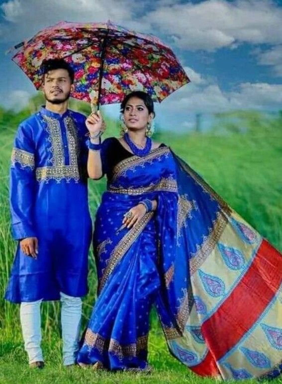 🥰কাপল ড্রেস 🥰 ☘ধুপিয়ান সিল্ক পাঞ্জাবি  ☘প্রিমিয়াম হাফসিল্ক শাড়ি  ☘স্কিন প্রিন্টের কাজ করা  ☘পাঞ্জাবিতে ব্লক প্রিন্ট এর কাজ ☘কোয়ালিটি সম্পন্ন  ☘অরিজিনাল প্রোডাক্ট  ☘পাঞ্জাবি সাইজ-৪০,৪২,৪৪,৪৬
