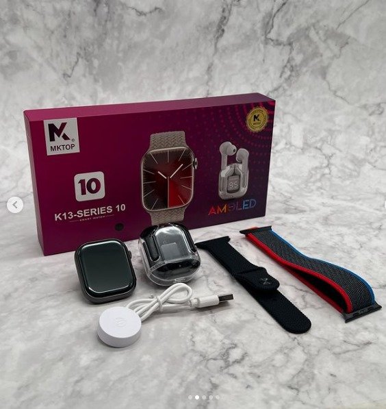 COMBO DE RELOJ INTELIGENTE K13-SERISE 10 AUDÍFONOS BLUETOOTH, INCLUYE DOS CORREAS , RECIBE NOTIFICACIONES YES COMPATIBLE CON TODO TIPO DE TELÉFONO