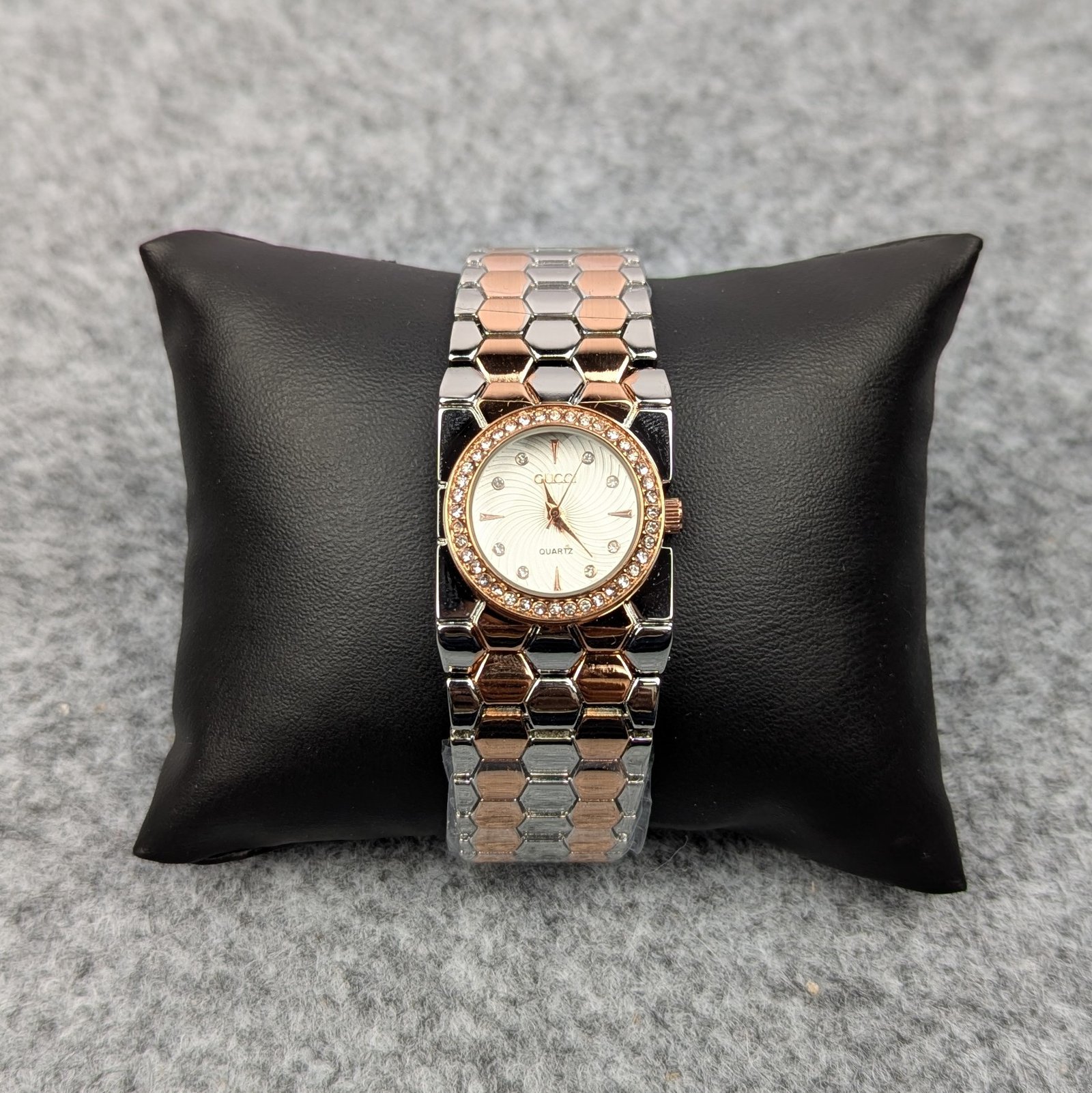 Strap: Premium metallic bracelet with honeycomb pattern