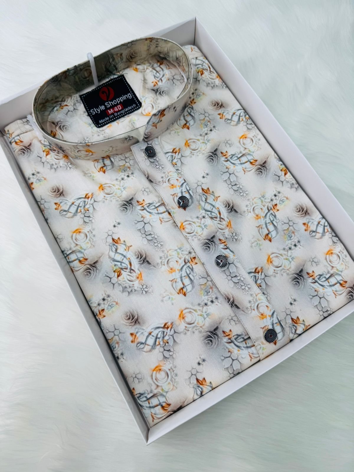 Luxury panjabi ১০০% পিওর সুতি কাপড় ১০০% ডিজিটাল পিন্ট snap button size:(M-40)L-42)(XL-44)