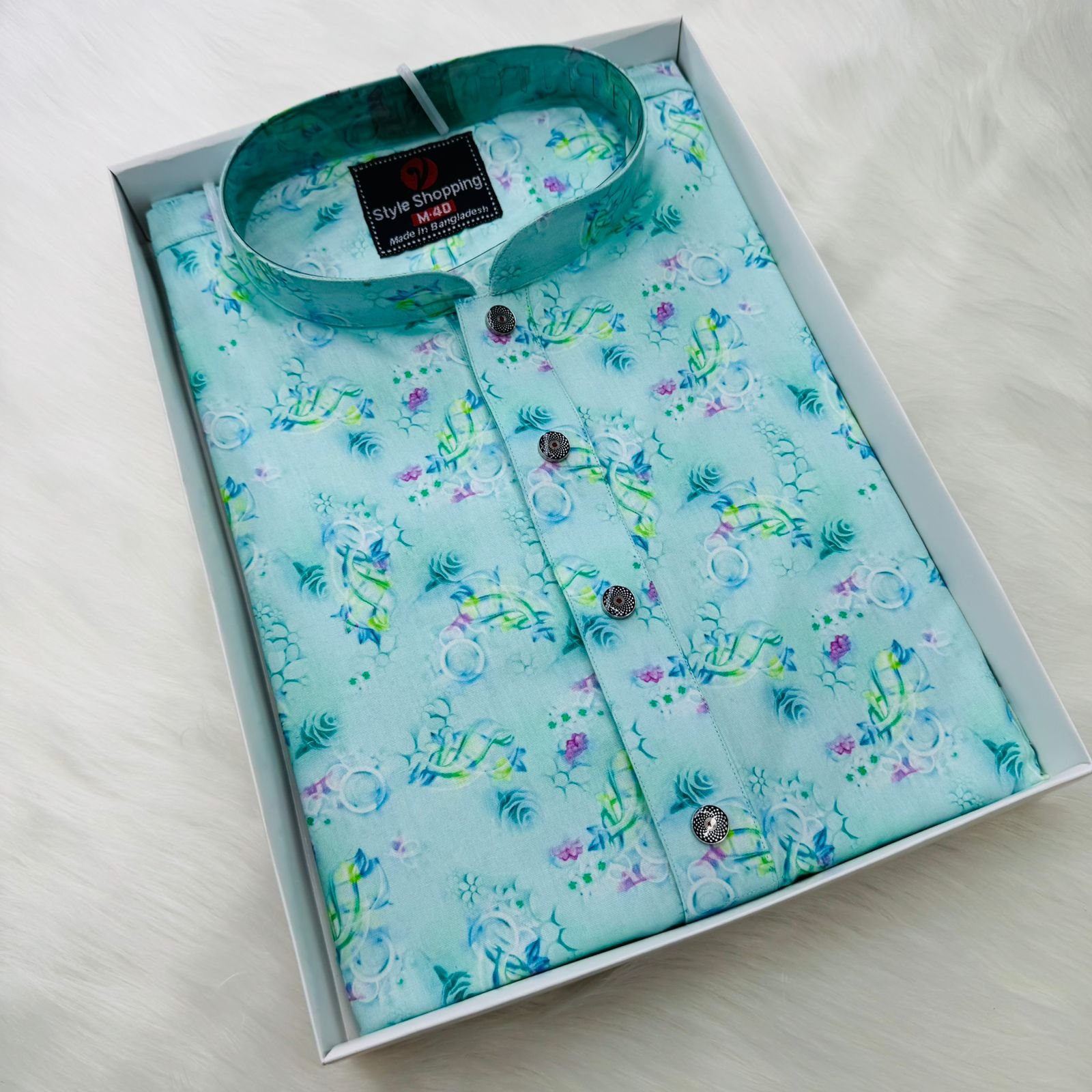 Luxury panjabi ১০০% পিওর সুতি কাপড় ১০০% ডিজিটাল পিন্ট snap button size:(M-40)L-42)(XL-44)