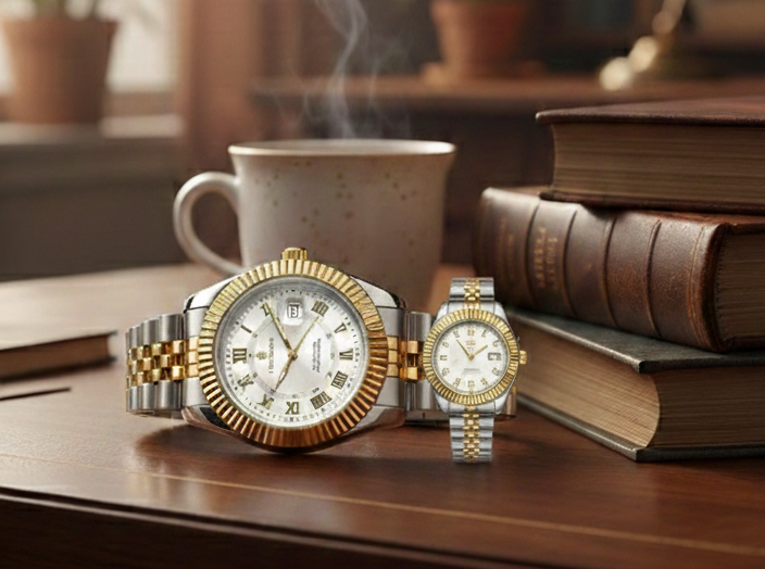 একটি অলস দুপুর, হাতে প্রিয় বই আর ধোঁয়া ওঠা কফি—এমন মুহূর্তকে পূর্ণতা দিতে প্রয়োজন নিখুঁত একটি টাইমপিস। আমাদের এই এক্সক্লুসিভ টু-টোন মেটাল কালেকশন আপনার ব্যক্তিত্বে যোগ করবে আভিজাত্যের নতুন মাত্রা।