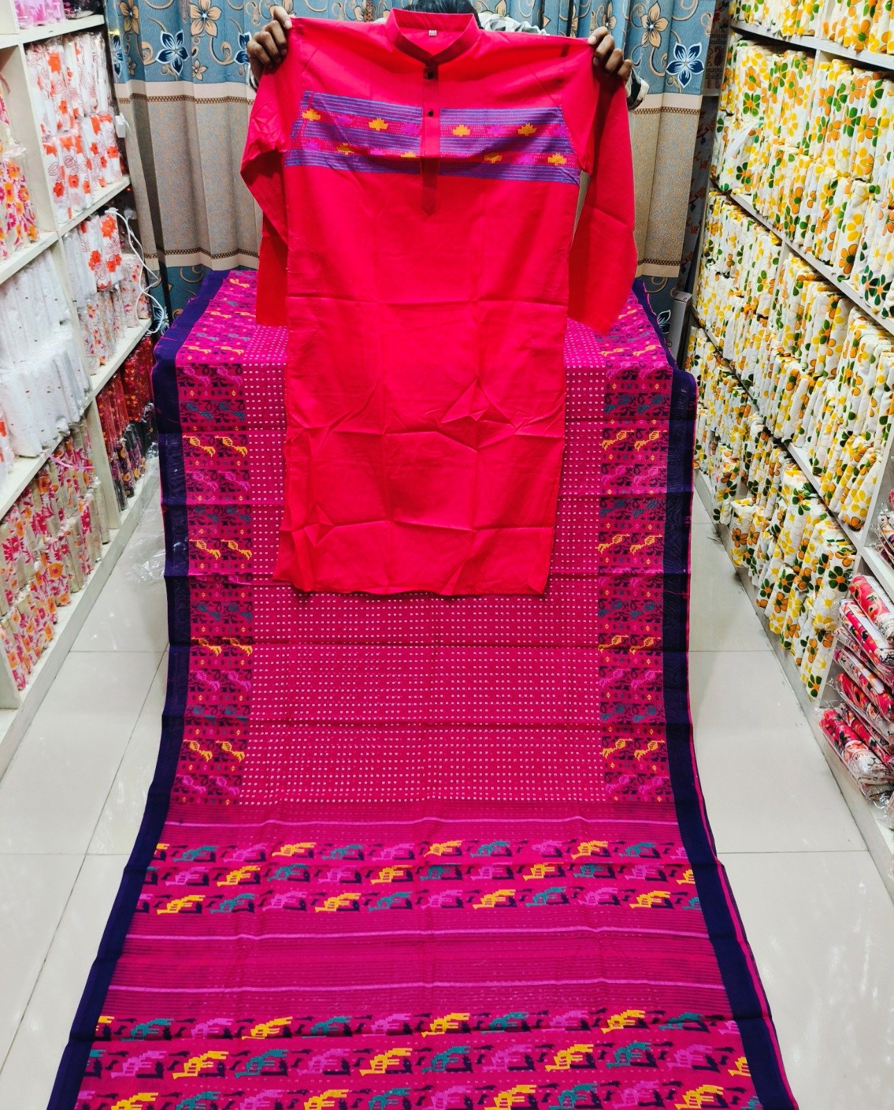 Premium Quality Couple Dress  হাফ সিল্ক শাড়িতে স্কিন প্রিন্ট কাজ করা ও   ধুপিন্যান সিল্ক পাঞ্জাবিতে ব্লক প্রিন্ট কাজ করা | প্রোডাক্ট টাইপ:- হাফ সিল্ক শাড়ি। ধুপিয়ান সিল্ক পাঞ্জাবি। শাড়ির লং ১২ হাত। স্কিন প্রিন্ট ও ব্লক প্রিন্টের কাজ করা।  পাঞ্জাবি সাইজ-৪০,৪২,৪৪,৪৬ আধুনিক ও মান সম্মত ডিজাইন। অরিজিনাল প্রোডাক্ট।
